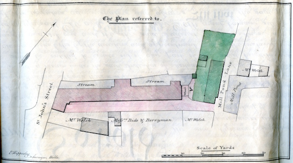 | Plan from indenture relating to the sale of water grist mills and land adjoining St John Street, Wells, 1845 – MCFC-IND-003 |