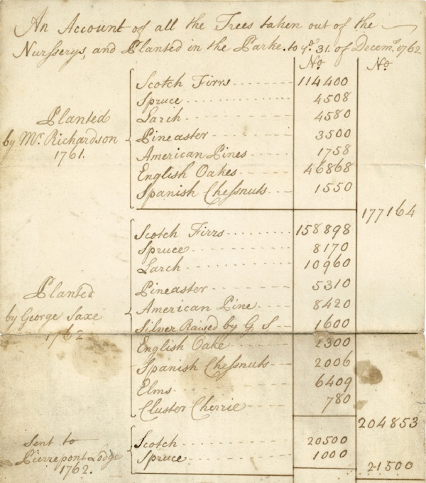 | “An Account of all the Trees taken out of the Nurserys and Planted in the Parke to 31 December 1762” – MCFC-IND-022 |