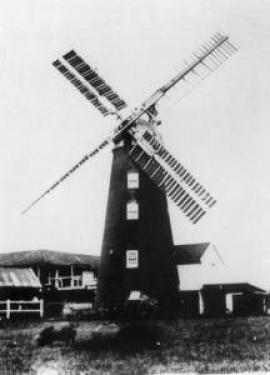 A wind-powered corn mill in the historic county of Suffolk, England.