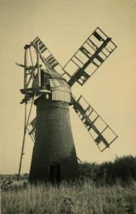 A wind-powered drainage mill in the historic county of Norfolk, England.