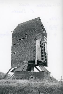 In early 1978 a gale blew out most of the tail wall of the mill and left the structure badly damaged. Unfortunately the public body which owned it then rebuilt the buck a different shape and without the machinery, which was left to rot on the ground, although some parts were salvaged and taken to West Blatchington (Sussex) and Stelling Minnis (Kent) mills. The loss of the machinery meant that the structure was unbalanced, resulting in its collapse in the hurricane of 1987. Little now remains at the site.
