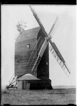 This tarred post mill, with its steeply pitched roof, had one of the largest bodies in the south-east of England, measuring 21ft in length by 13ft in width. It retained its wooden windshaft and poll end until the end of its working life and was the last windmill in Sussex to possess this feature. There were two common and two spring sweeps. The mill was winded by a fantail mounted above the rear roof gable, driving down to a pair of wheels at the bottom of the tail ladder – a common feature among post mills in this far eastern part of Sussex and the adjacent region of Kent, and probably the work of a local millwright.