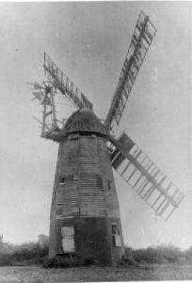 A wind-powered corn mill in the historic county of Suffolk, England.