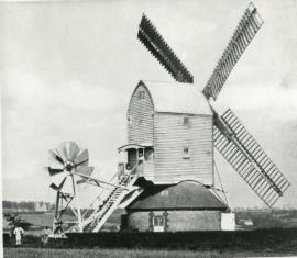A wind-powered corn mill in the historic county of Suffolk, England.