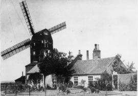 A wind-powered corn mill in the historic county of Suffolk, England.