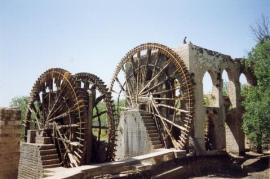 A water-powered pumping mill/wheel in Syrian Arab Republic.