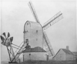 A wind-powered corn mill in the historic county of Suffolk, England.
