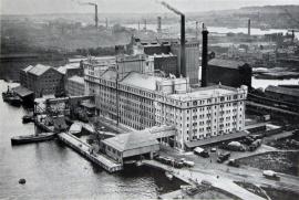 Millenium Mills were built in 1905 by William Vernon on Victoria Docks, named after Vernon's leading flour brand. The mill was rebuilt in the 1930s after being taken over by Spillers, and again after bombing in WWII. It closed in the 1980s and became derelict, but has been listed.