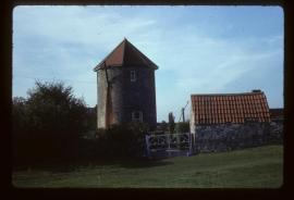 A wind-powered corn mill in the historic county of Somerset, England.