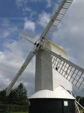 A wind-powered corn mill in the historic county of Surrey, England.