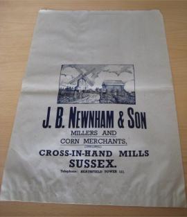 Paper flour bag showing the name of the last millers at New Mill, the Newnhams
