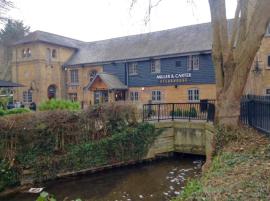 Formally known as the Scotsbridge Mill, it became the Miller and Carter Steakhouse. The wheels are still visible inside the restaurant and they have still kept the features of the mill, but no workings.