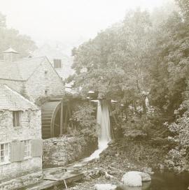 A fulling mill was built here in the early 19th century, later becoming a textile mill. Since 1859 it has belonged to the Williams family. A large new building was constructed c 1970 replacing some of the older buildings. The mill remains in use and is powered by water turbines.