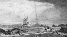 A wind-powered corn mill in the historic county of Surrey, England.