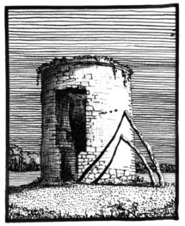 A windmill is recorded here c.1600, but this structure may be C18. Probably derelict by 1842. In about 1941, with the establishment of Angle Airfield following air raids on Milford Haven, a battle HQ bunker was built about 40 m E of the windmill. The windmill was adapted to serve as a machine-gun post, probably because it had sufficient height for clear view over the nearby hutments. Angle Mill is Grade II Listed.