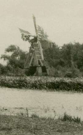 A wind-powered drainage mill in the historic county of Norfolk, England.