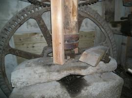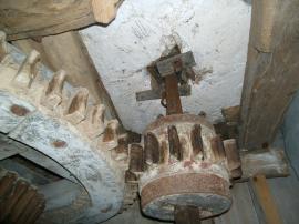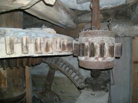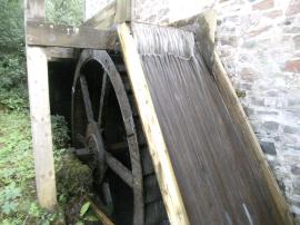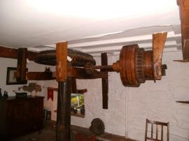 This house converted mill used to be a double mill with tandem waterwheels. One water wheel remains and is in working order, with some old machinery in the living room of the house.