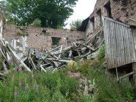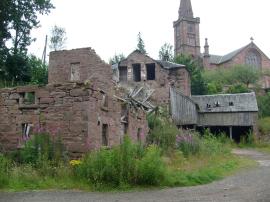 A two-storeyed and attic rubble-built water-powered grain mill with drying kiln and piended slate roof. It had been rebuilt in 1834, but at the time of survey in 2002, the mill was in a very poor state of repair and had been gutted of its machinery.