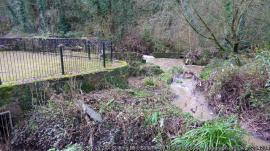 Built in the 18th century for nail production. It became a textile mill in 1800 and was abandoned in 1825. Excavations have been carried out on the remains in 1969 and 2005.