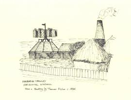 Mill was constructed c. 1800, and operated until 1840, when it was probably demolished. This mill was the earliest known use of wind power being used to drive a pug mill (as a replacement for the horse).