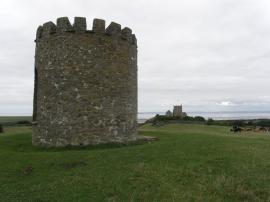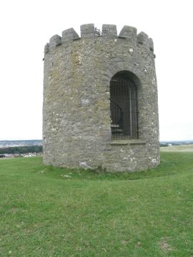 Artillery had been mounted on this hill against the coming of the Armada in 1588. A map of 1782 shows a tower, and an insurance policy of 1789 mentions a windmill. By 1829, however, it seems to have already fallen out of use, for it was then referred to as “the walls of a windmill”. During the Napoleonic wars, it appears that corn had been grown on the steep slopes of Uphill and nearby Brean Down, but with the coming of peace the land probably reverted to pasture and there was no longer any need for a mill to process the grain. On 10th March 1863, a beacon was built on iron rods laid across the top of the tower to commemorate the wedding of the future King Edward VII. In 1934 the tower was rebuilt with a castellated top and an iron spiral stair “for use as an observatory”, and during the Second World War both the Royal Observer Corps and the Home Guard (Weston-super-Mare units) were based here. Given the elevated position in open land alongside the Severn estuary, it would have offered excellent views (as far as the Mendips, Glastonbury Tor, Exmoor and Cardiff) but little protection against air attack. The book mentioned below includes a photograph of the ruined tower in the 1930s before it was converted. The tower survives to this day and is open to the public (Coulthard and Watts, 1978).