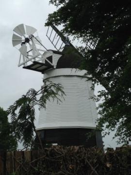 A three-storey, twelve sided smock mill with an ogee cap. It worked until 1910, after which it was converted into a summer residence, belonging to St John's College, Oxford. It was provided with mock sails for use in the film Chitty Chitty Bang Bang in 1968. It was renovated and converted into a house again in the 1970s for Hayley Mills.
