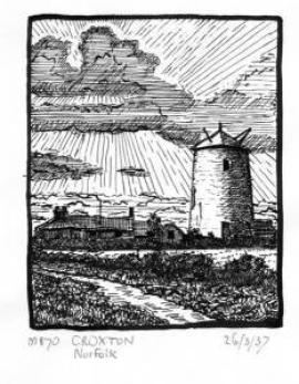 A wind-powered corn mill in the historic county of Norfolk, England.