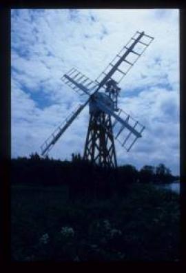 A wind-powered drainage mill in the historic county of Norfolk, England.