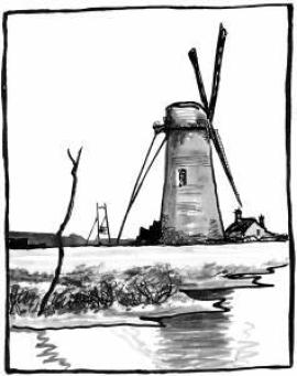A wind-powered drainage mill in the historic county of Norfolk, England.