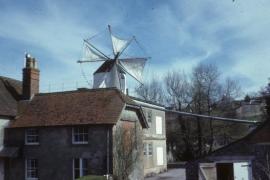 Designed by Derek Ogden in the style of a Portugese windmill and erected in the 1960s on the roof of Cann Watermill. Taken down in 2008 in order to expand the watermill.