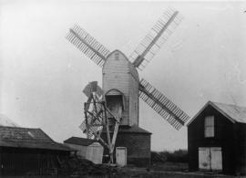A wind-powered corn mill in the historic county of Suffolk, England.