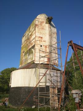 Close-up of the front of the mill, when only two sweeps were fitted, showing the metal sheeting on the body