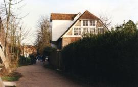 On the River Thames, this large wooden mill was gutted before 1970 and is now used as a commercial building, with water still passing under. At the end of its working life the mill had been powered by electricity.
