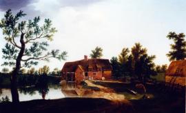 The image is an oil painting by William Tomkins ARA (c.1732-1792), signed with initials "W.T." and dated 1768 (oil on canvas, 23.5 x 38.5 inches).