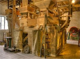 Interior view showing the fine wooden ‘hurst frame’ on which the four pairs of millstones are mounted