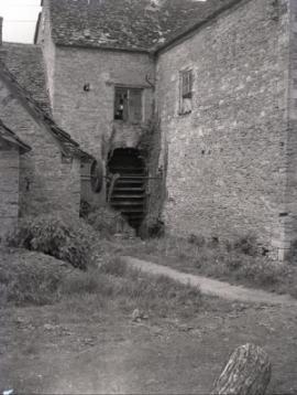 On the Leach, this mill was working until about 1970. A 14 ft by 6 ft 6 inch breast-shot wheel drove three pairs of stones, via a layshaft, horizontal shaft and bevels. Local farm water was also pumped by an 8 ft over-shot metal wheel.