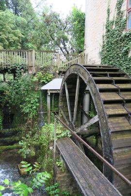The mill is now part of the Ruskin Mill Trust, and is a centre for craft-based skills. Its overshot wheel is outside and its machinery is still in place.