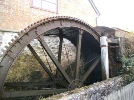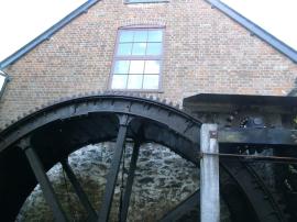 A working leat driven mill, with waterwheel ring gear. The waterwheel is an import from Dunscombe farm, near Crediton and is 14ft dia by 4ft breast.