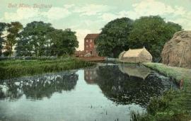 A corn and bone mill in the 1850s, the mill became a roller flour mill owned by E B Bradshaw and Sons. It was at one point powered by water turbine. It was rebuilt by Gelder & Kitchen in the 1950s.