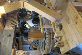 The mill straddles the River Ivel and, despite its newness, is a Grade II listed building. The upper floors of the mill are timber-framed and stand on a brick base. Some of the internal machinery survived the fire and has been restored by a team of volunteers headed by Ray Kilby, who was responsible for the reconstruction of the massive wooden clasp-arm great spur wheel. Notable features of the mill include the 4.4 metre wide cast-iron overshot waterwheel, reputedly the widest in the country, and the elegant cast-iron hurst frame, both manufactured by Whitmore & Binyon, millwrights of Wickham Market in Suffolk. Steam power was also used on the site and the tall square brick chimney was restored as part of the recent repairs.