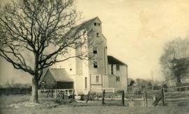 Geoff Holman: "White, Jarvis or Hovis mill Standing midway between Wickhambreaux and Littlebourne on the River Little Stour, this mill was one of four mills on this stretch of river. The name of a mill sometimes changed during its life and could be the name of the owners, the colour of the mill, or even, as in this case, the name of a product from the mill. There has been a mill on this site for many years, but I have yet to establish when the current mill was built, but imagine it would have been towards the end of the 18th Century. It is of brick and weatherboard construction and had five floors. It had an 8 foot diameter breastshot waterwheel - meaning that it was turned by water being directed onto it at a level just above the height of the axle. It drove 3 pairs of millstones. Wheat to be ground was imported from Russia and was firstly shipped to Sandwich and then transferred to horse drawn barges which brought it up the river to Littlebourne. These were in operation from 1801 to 1870. The sacks of flour produced were loaded onto horse drawn wagons. Some were delivered locally, but the bulk went to bakeries in Thanet. It was leased to William White in 1803 and later, in 1820 to Mr Kingsford who had a larger 12ft 6in diameter, 5ft 7in width wheel fitted to provide more power. In 1851, William Halliday was the miller. By 1890 a new waterwheel was needed, and in 1894 further repairs were described in an estimate from Holman Bros the Canterbury millwrights to Mr Jarvis. This Included new iron gearing including the pit wheel at a cost of £45.10.0. An alternative estimate was to provide new wood gearing made of sound dry timber dowelled & bolted together & geared with hardwood cogs fitted & fixed complete at the mill on the present iron, fixed for the sum of £36.0.0. The owner was to provide cartage of men & materials to & from the mill.”It would take 5 weeks to prepare the iron wheels & about 6 weeks to prepare the wood wheels, which would take 5 days for fixing.” An added note stated that “the iron wheels will make by far and away the best job”. Records show that Mr Jarvis owned the mill until 1944, when it was taken over by Vitovis who added the Hovis sign seen in the photograph. They modernised the mill in 1945 by replacing the millstones with steel rollers and converting it to be driven by an electric motor. It then produced animal feed and was fully automated, with grain being fed in at one end and animal feed coming out the other. Frank Denbigh was the manager during this time. Fortunately they kept the structure of the mill in good condition and retained the waterwheel. At some stage it was sold to Gardener and Sons of Birchington, but by 1957 it had stopped working and was converted into a house in the late 1960s. A survey undertaken in 1972 reported that the wheel and sluices were all working, but all machinery from the inside had been removed."
